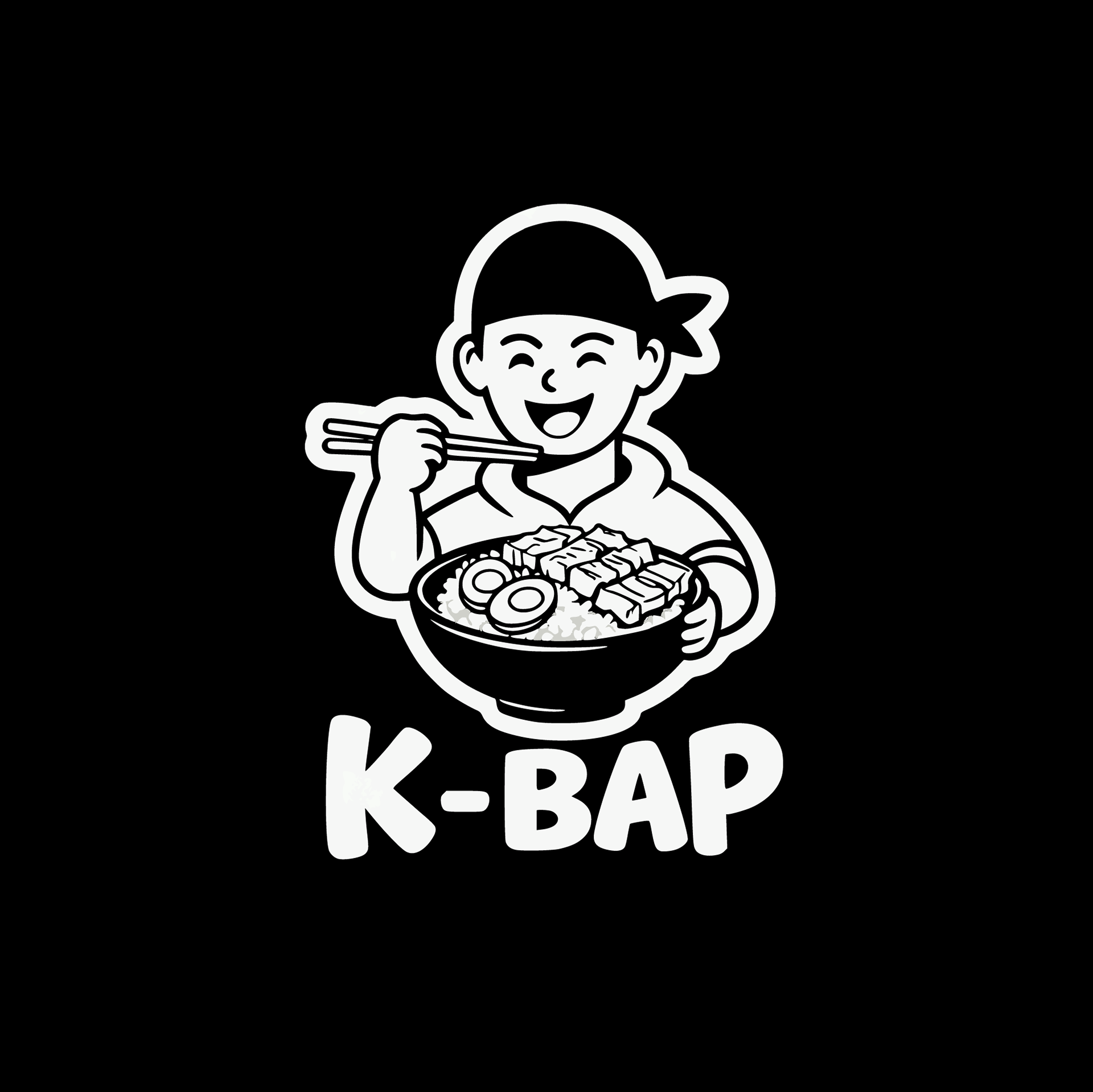 To meet the client's vision, we developed a custom mascot logo centered around the joyful experience of eating. The solution was a friendly and energetic character enthusiastically enjoying a K-BAP bowl. The illustration was crafted in a bold, clean line art style, ensuring it was modern, memorable, and highly scalable. We incorporated key ingredients like rice, grilled meat, and a boiled egg to instantly signify the product. The playful, rounded typography was chosen to complement the illustration and reinforce the brand’s fun-loving personality.